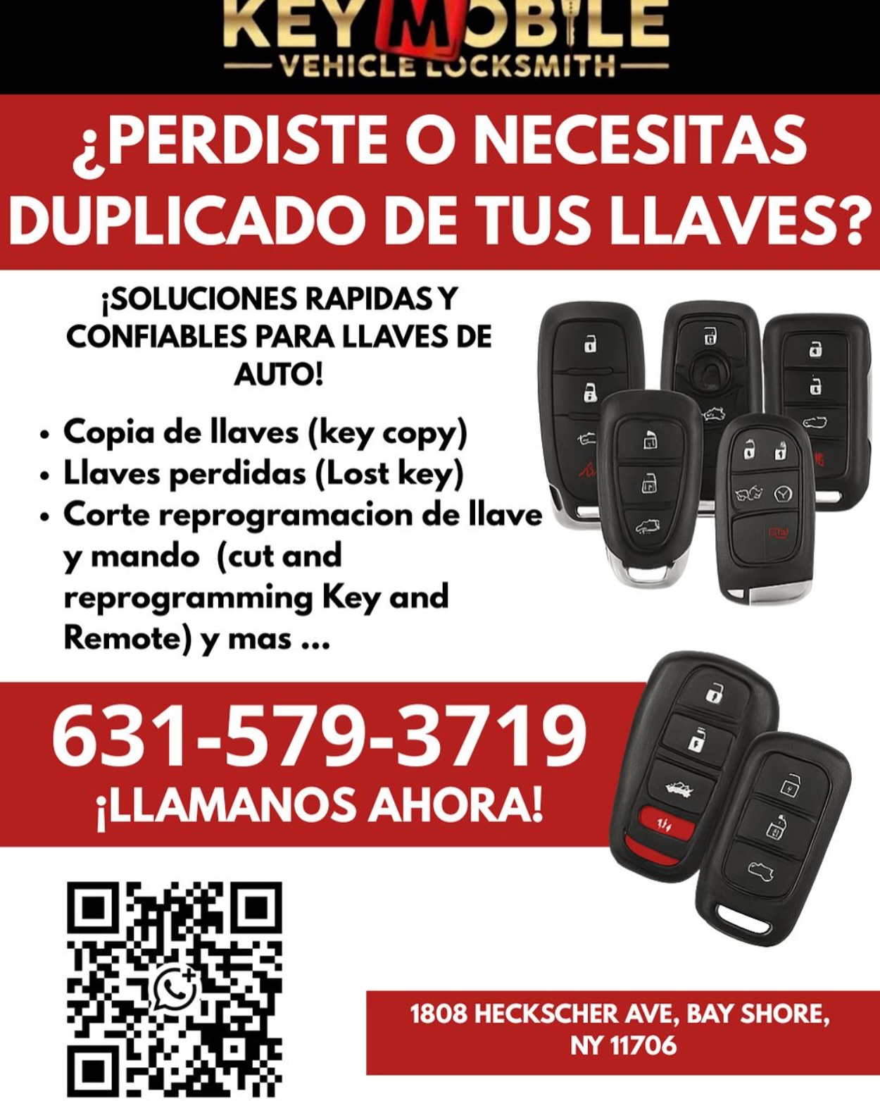 At Key Mobile Vehicle Locksmith in Bay Shore, NY, US, we are your dedicated mobile locksmith. We provide comprehensive auto locksmith services, including car key replacement and assistance when you pop a lock. Our team of automotive locksmith specialists also functions as skilled key cutters. As a 24 hour locksmith, our car locksmith solutions are available anytime.